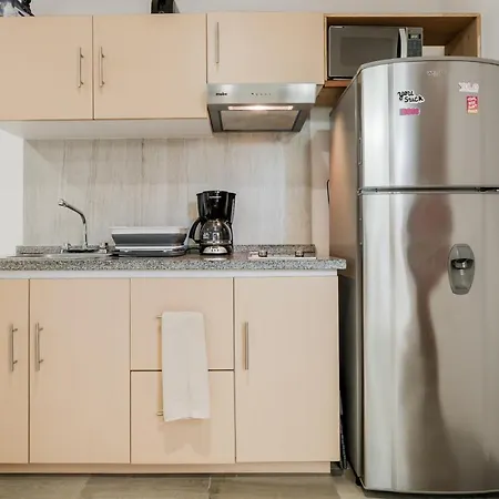 Playa Marlinの近いZona Hotelera地区にある50m^2のNew Beachside Loft Cancun zoneアパ-トは,4人の顧客向けです. このアパ-トにある電子レンジ,電気ポットと冷蔵庫のある台所を有しています.